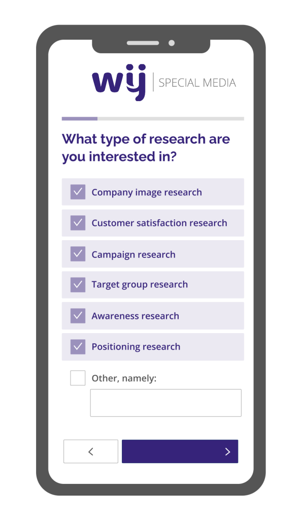 WIJ Special Media has the ability to conduct satisfaction research, image studies, and baseline measurements in collaboration with clients. We use our database to specifically invite the right target group to participate.